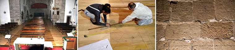 Intervención: se restauró la tarima de madera del suelo de la iglesia y, al levantarla, se descubrió un conjunto de monteas o trazas de cantero, de gran valor patrimonial e histórico. Una vez restaurada la tarima, se dibujaron sobre ella las monteas y sobre las partes más relevantes se colocó la tarima en cajones practicables para que los especialistas que deseen estudiarlas puedan acceder a ellas.