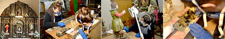 Intervención: se llevó a cabo la desinsectación, consolidación de las piezas, el sentado del color, la limpieza y el tratamiento de lagunas para obtener una imagen unitaria del retablo.