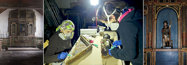 Intervención: se aplicaron todos los tratamientos necesarios para recuperar la solidez estructural del retablo