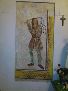 Intervención: recuperación y conservación de las pinturas murales halladas en la nave y en el prebisterio del templo, mediante su consolidación, limpieza, amorterado y restitución.