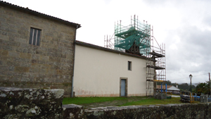 Intervención: recuperación de la estructura de madera que sujeta el techo del atrio, que estaba muy deformada, lo que provocaba que el agua de la lluvia entrase por la cumbrera e iba pudriendo poco a poco la estructura. También se limpió la cubierta de la capilla, que tenía muchas tejas rotas.
