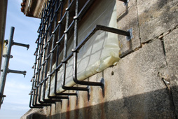 Intervención: trabajos de conservación en su fachada este, saneamiento y repaso de revocos y pintura. Instalación de bajantes de agua, en cobre, para mejorar el desagüe.
