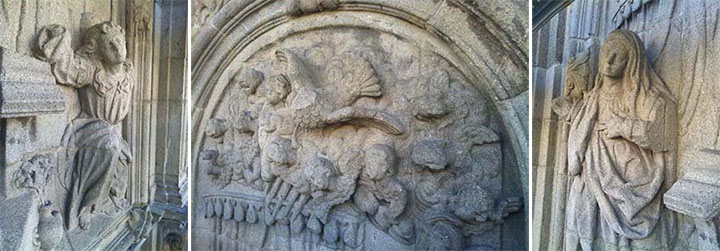 Intervención: limpieza de la fachada, eliminación de humedades, suciedad e invasión de vegetales, algas y líquenes e invasión de palomas. Limpieza completa, con tratamiento de hidrofugado en las partes planas de la fachada, para evitar acumulación de agua.