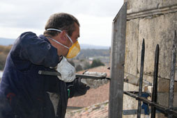 Intervención: retirada de rejas para su limpieza y arreglo en el taller y rehabilitación de los dinteles de piedra de los huecos de las ventanas.