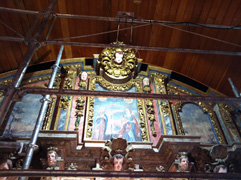 Intervención: restauración completa del retablo mayor de la iglesia parroquial de Nemenzo, parroquia situada en la zona rural norte del término municipal. Eliminación y arreglo de desperfectos provocados por alteraciones, repintados, humedades y ataque de xilófagos.