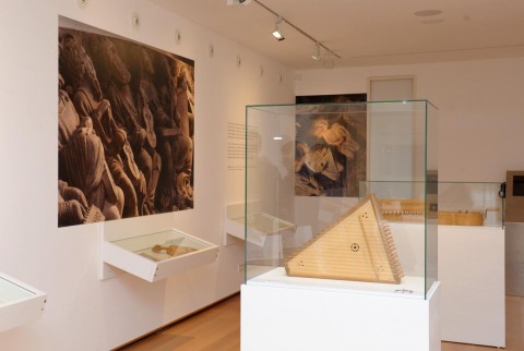 A mostra componse dunha selección de réplicas en madeira de fídulas, harpas, salterio, organistrum ou laúde, que pertencen á colección da propia fundación. Dous paneis interactivos onde se poden ver as pezas en 3D, así como un documental sobre a súa construción, complementan a mostra, que aporta información gráfica sobre o sitio que cada instrumento ocupa na xoia románica do mestre Mateo. Igualmente, nun facsímile do Códice Calixtino pódese ver a música que se interpretaba na Idade Media.